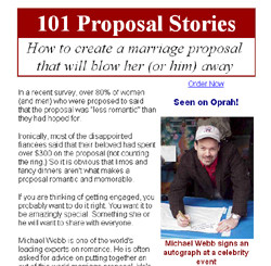 Leading book on marriage proposals. Tips, ideas and 101 real life stories of engagements. By Michael Webb, romance expert.